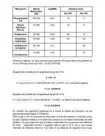 Cette technique permet également de déterminer la masse moléculaire approchée de la protéine à l'aide de marqueurs connus. Pour cela il faudra tracer une courbe de calibration ( log(MM)= f (distance de migration)).