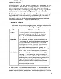 Sur base de ces sources nous avons pu à travers différentes fiches de lecture définir scientifiquement les concepts de notre question de départ. En mettant ces différentes informations en commun et en se documentant à l’aide de sources électroniques, articles scientifiques, mémoires,… nous avons réalisé une synthèse qui a permis de faire des liens entre les différents concepts mais aussi entre notre phénomène et ses déterminants. Nous avons pu donner certaines informations telles que des statistiques qui ont pu quantifier notre phénomène afin de déterminer son importance. Cette synthèse nous a permis de pouvoir proposer, une première fois, une réponse à notre question de départ.