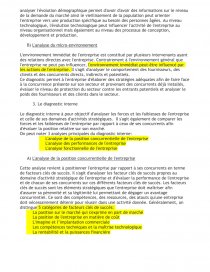 = Diagnostic → analyse pour élaborer la stratégie. Elle concerne l'analyse externe de l'entreprise (environnement dans lequel évolue l'entreprise) et l'analyse interne (repérer ses forces et faiblesses pour déterminer l'avantage concurrentiel). Il s'agit de comprendre dans quelle mesure l'organisation de l'entreprise a les capacités pour déployer la stratégie qui va être prévue et orienter son organisation pour obtenir un avantage concurrentiel. Dans l'analyse interne, on va se focaliser sur les ressources de l'entreprise et ses compétences (sa capacité à bien utiliser ses ressources).